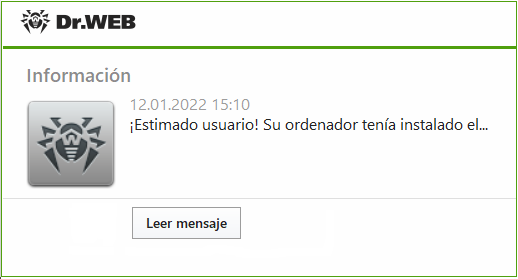 El administrador del sistema puede enviar a los usuarios los mensajes informativos de contenido arbitrario, que incluyen: •texto del mensaje; •hipervínculos a recursos en línea; •logotipo de la compañía (o cualquiera imagen gráfica). El título de la ventana también indica la fecha exacta en que se recibió el mensaje. Estos mensajes se muestran en el lado del usuario en forma de ventanas emergentes (ver imagen abajo). Ventana de mensaje en una estación en SO Windows Para enviar el mensaje al usuario 1.Seleccione la opción Red Antivirus en el menú principal del Centro de Control. 2.En la ventana que se abre, seleccione una estación o grupo en la lista jerárquica y en la barra de herramientas haga clic en 3.En la ventana que se abre, complete los siguientes campos: •En el campo Encabezado del mensaje puede especificar el título del mensaje, por ejemplo, el nombre de la empresa. Este texto se mostrará en el título de la ventana del mensaje a la derecha del logotipo. Si este campo permanece vacío, la información sobre el mensaje se mostrará en el lugar del encabezado en la ventana del mensaje. •Texto del mensaje — campo obligatorio. •Marque la casilla Mostrar logotipo en el mensaje, para mostrar un objeto grafico en el encabezado de la ventana del mensaje. Establezca las siguientes opciones del logotipo: ▫A la derecha del campo Archivo del logotipo presione el botón •Marque la casilla Mostrar enlace en el mensaje, para incluir un hipervínculo a recursos web en el mensaje. Para agregar un enlace: a)En el campo Nombre del enlace especifique el nombre del enlace: el texto que se mostrará en el lugar del enlace en el mensaje. b)En el campo Dirección URL para el enlace especifique la dirección URL de la página web que se abre al hacer clic en el enlace. c)En el campo Texto del mensaje agregue el marcador {link} donde sea que necesite agregar un enlace. En el mensaje resultante en su lugar se insertará un enlace con los parámetros especificados. Numero de tags {link} en el texto no está limitado, pero todos contendrán los mismos parámetros de los campos Dirección URL para el enlace y Nombre del enlace. Si hay uno o más marcadores {link}, el enlace se insertará solo en el lugar de los marcadores. d)Si el marcador {link} no está especificado en el campo Texto del mensaje, el enlace se insertará una vez al final del mensaje en una línea separada. •Marque la casilla Enviar solo a estaciones en la red, para enviar el mensaje solo a las estaciones en la red (en línea). Si la casilla está marcada, no se realizará el envío a las estaciones desconectadas. Si la casilla está desmarcada, el envío a las estaciones desconectadas se pospondrá hasta el momento de su conexión. •Marque la casilla Mostrar el estado del envío, para mostrar una notificación con el estado del envío del mensaje. 4.Haga clic en el botón Enviar. Formato del archivo del logotipo El archivo con la imagen gráfica (logotipo) incluido en el mensaje debe cumplir las siguientes condiciones: 1.Formato gráfico del archivo: BMP, JPG, PNG, GIF, SVG. 2.El tamaño del archivo del logotipo no debe superar 512 KB. 3.Las dimensiones generales de la imagen son 72x72 píxeles. Las imágenes de un tamaño diferente se escalarán cuando se envíen al tamaño predeterminado. 4.La profundidad de color (profundidad de bits) puede ser cualquiera (8–24 bits).
