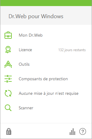 Figure 14. Menu Dr.Web Lors d’une mise à jour Dr.Web télécharge et installe automatiquement tous les fichiers mis à jour en fonction de votre version de Dr.Web, ainsi qu’une nouvelle version de Dr.Web si elle est disponible.